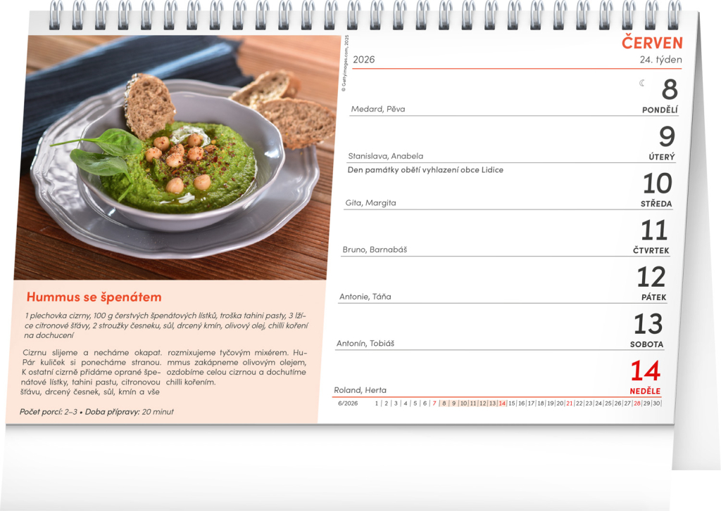 Zajímá vás, jak uvařit chutné a jednoduché jídlo? Stolní kalendář Recepty za kačku nabízí 53 takových tipů! Sami se budete moci přesvědčit, že vařit se dá chutně a zároveň levně. Týdenní kalendárium s prostorem pro poznámky obsahuje také svátky, památné dny, měsíční fáze a přehled na celý rok 2026 a 2027.
