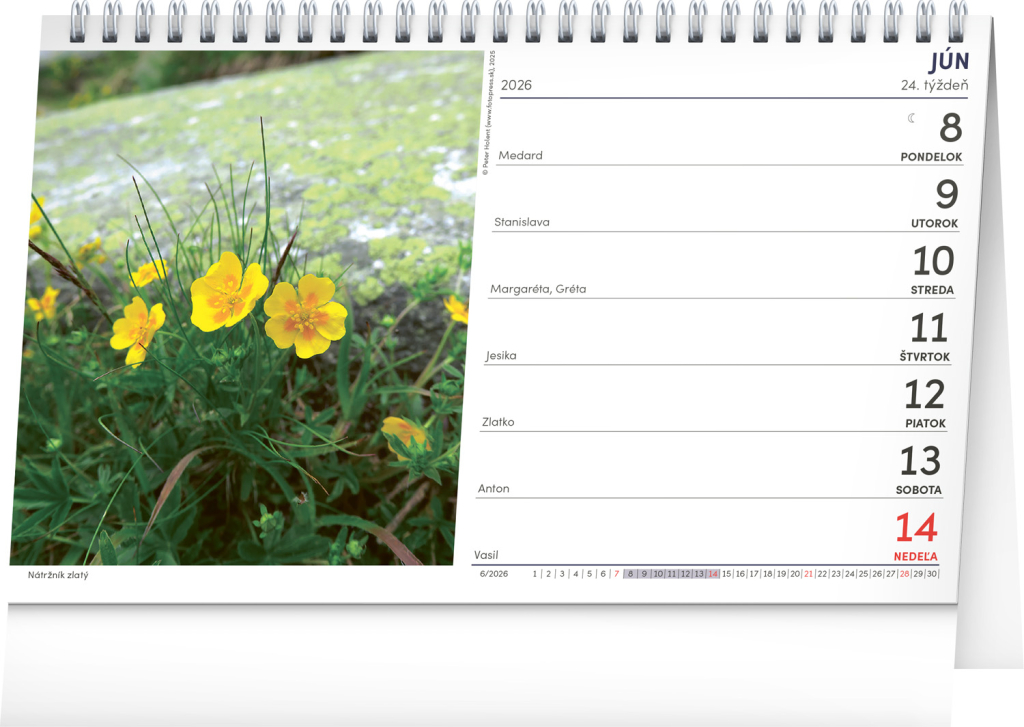 Slovenské hory v 53 snímcích stolního kalendáře s týdenním kalendáriem. Procestujte během roku známá i méně známá místa a zákoutí, která jsou pro vás ukryta v drsné a zároveň krásné tatranské krajině. Fotografie doplňuje slovenské týdenní kalendárium se jmény, svátky a památnými dny.