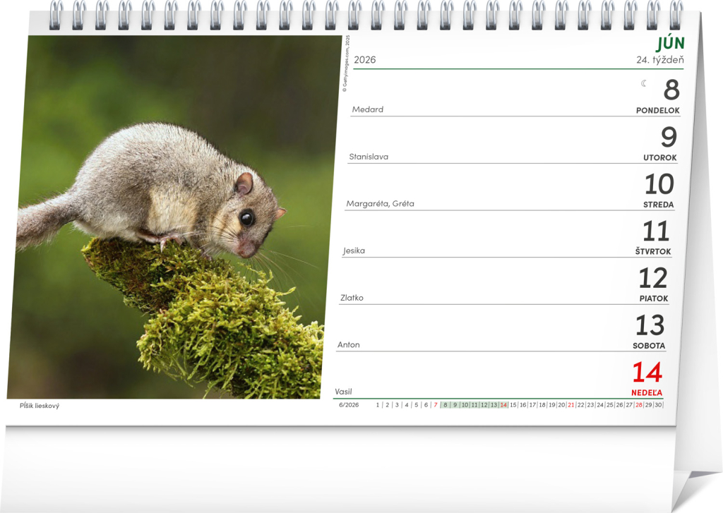 Oblíbený stolní kalendář obsahuje spoustu důležitých informací pro každého myslivce. Naleznete zde doby východu a západu slunce a měsíce na Slovensku, informace o aktivitách zvěře a přírodních aktualitách v průběhu roku a také přehled o době lovu srstnaté a pernaté zvěře. Tyto praktické informace doplňují nádherné fotky divoké zvěře od fotografa Miroslava Hlávka a kalendárium se slovenskými jmény, svátky a památnými dny.