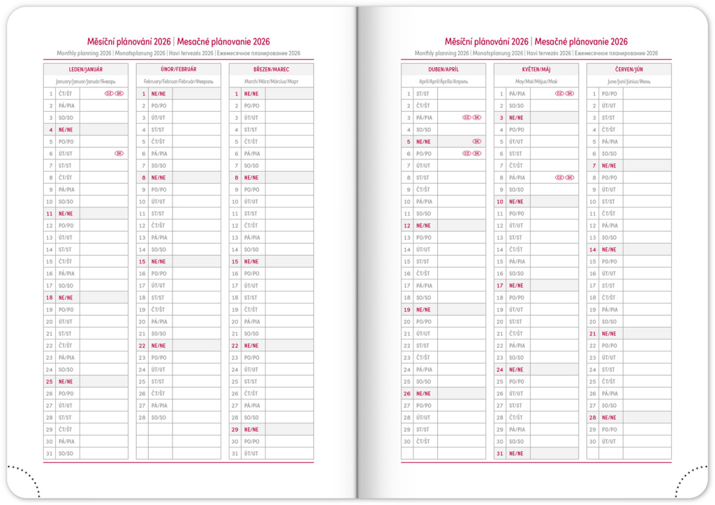 • roční plánovací kalendář 2026–2027
