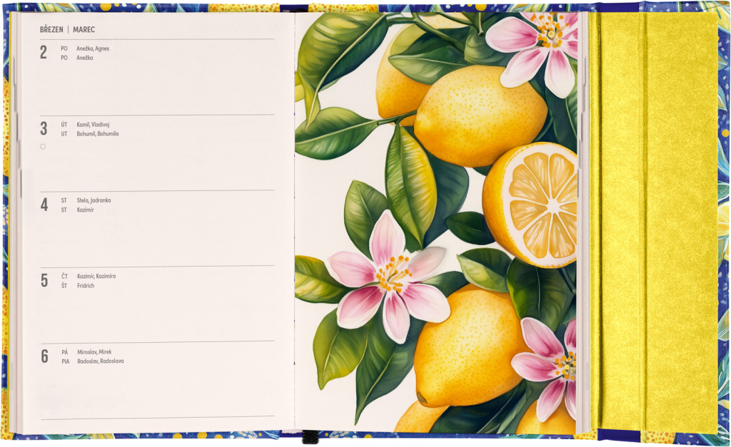 Týdenní diář s praktickým magnetickým uzavíráním je ideální volbou pro ty, kteří chtějí mít své plány přehledně pod kontrolou. Horizontální rozložení s českým a slovenským kalendáriem ve verzi týden na dvou stranách s prostorem pro poznámky. Součástí jsou praktické měsíční přehledy, ideální pro plánování dovolených či prázdnin, a také seznam českých a slovenských svátků a jmenin.