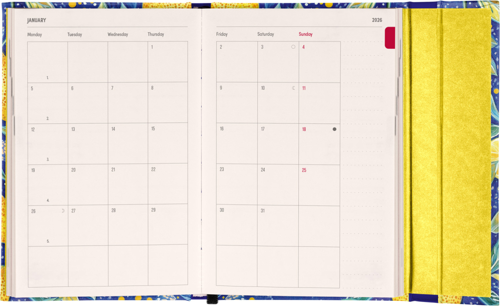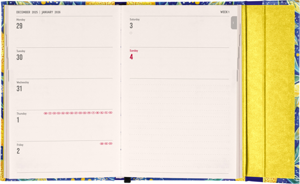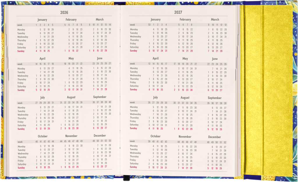 Týdenní diář v anglickém jazyce s mezinárodními svátky a praktickým magnetickým uzavíráním je ideální volbou pro ty, kteří chtějí mít své plány přehledně pod kontrolou. Nabízí horizontální rozložení ve verzi týden na dvou stranách s prostorem pro poznámky. Součástí jsou praktické měsíční přehledy, ideální pro plánování dovolených či prázdnin.