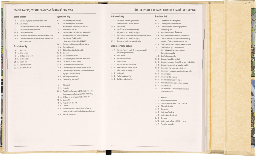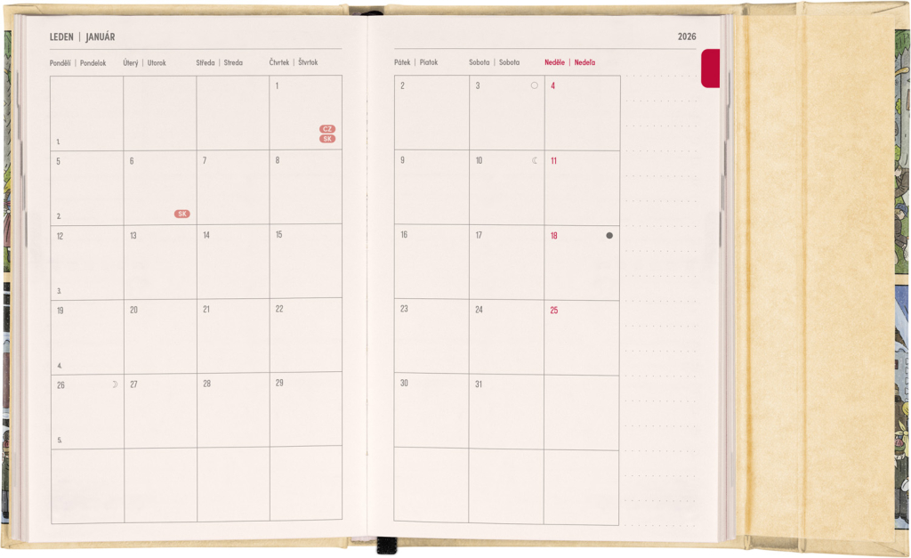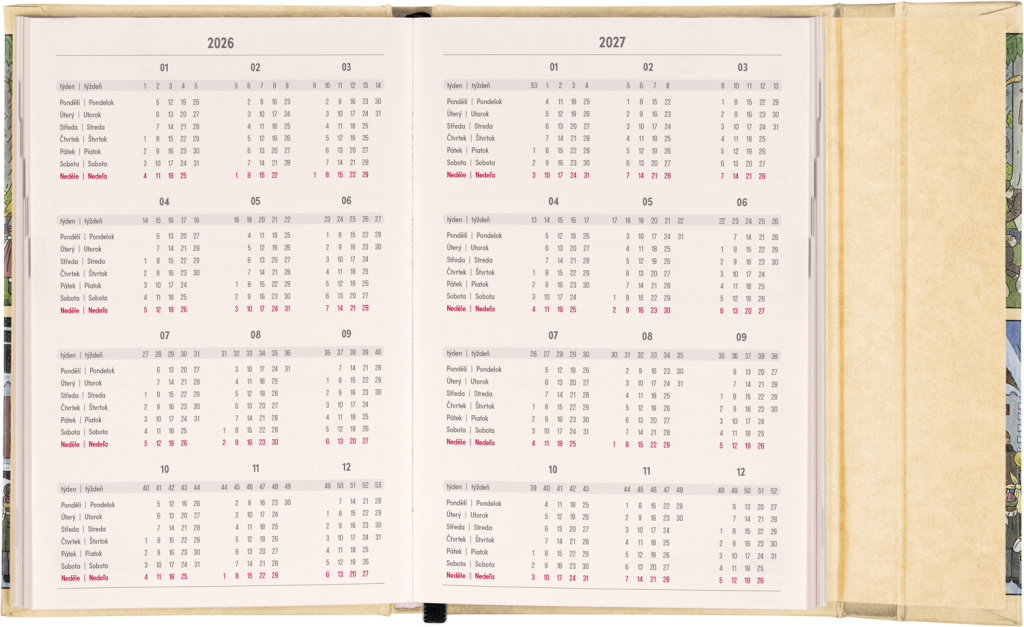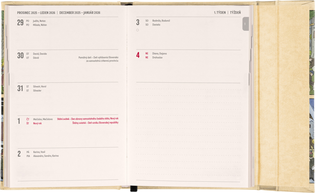 Týdenní diář s praktickým magnetickým uzavíráním je ideální volbou pro ty, kteří chtějí mít své plány přehledně pod kontrolou. Horizontální rozložení s českým a slovenským kalendáriem ve verzi týden na dvou stranách s prostorem pro poznámky. Součástí jsou praktické měsíční přehledy, ideální pro plánování dovolených či prázdnin, a také seznam českých a slovenských svátků a jmenin.