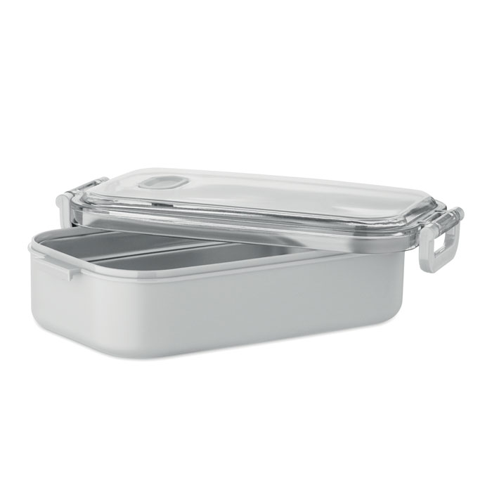 Obědový box z PP s přídavným zásobníkem z recykl. nerez. oceli. Vzduchotěsné AS víčko, které udrží potraviny čerstvé a bezpečné zavřené. Objem 750ml bez zásobníku a 650ml se zásobníkem.