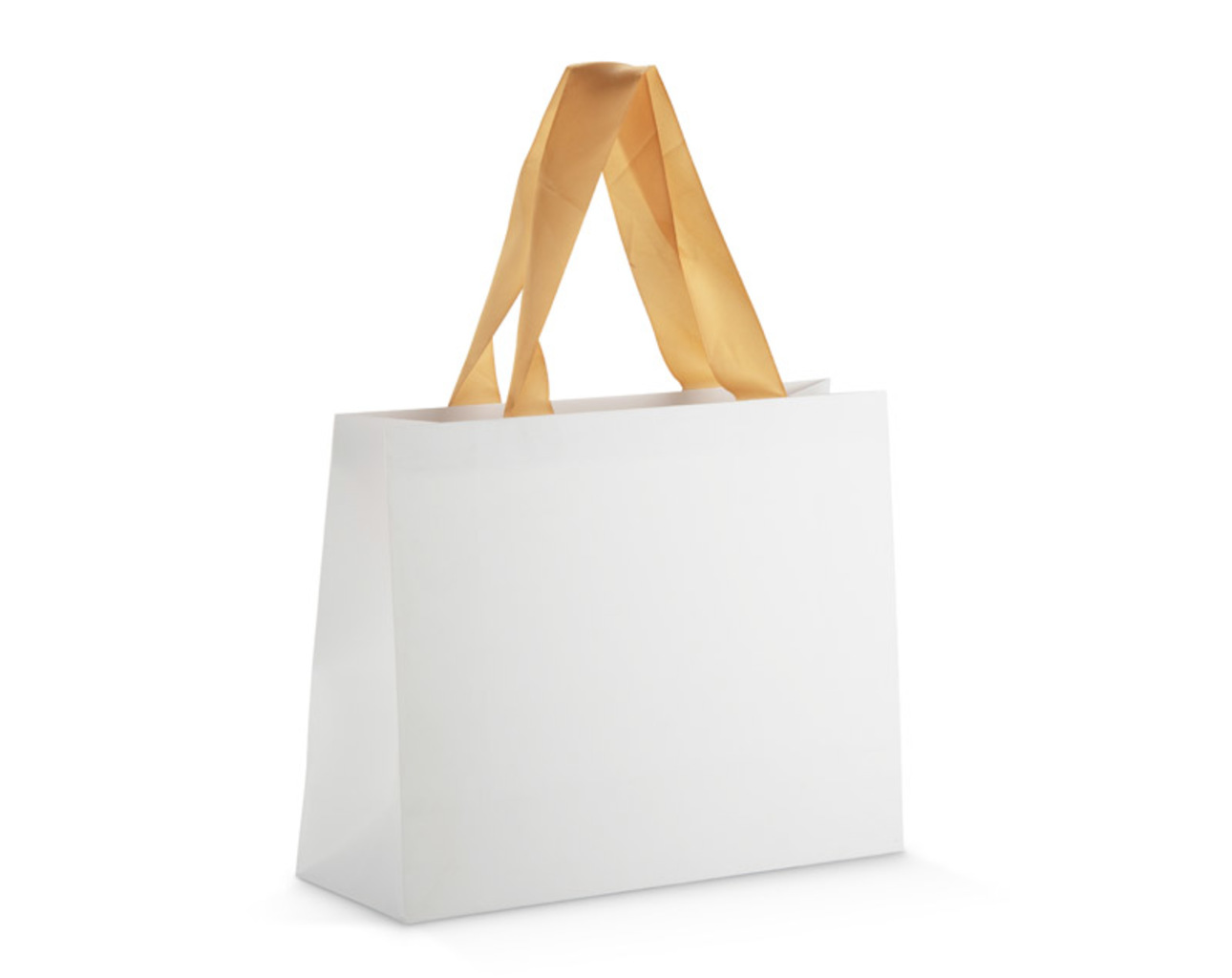 Velká papírová taška DUNA je elegantní a pevný obal ideální pro větší dárkové sady nebo prémiové produkty. Je vyroben ze silného a tuhého papíru, takže si zachovává svůj tvar i při použití těžšího obsahu. Široká ucha z textilní stuhy zajišťují pohodlnou manipulaci a podtrhují její luxusní charakter. Díky jednoduchému, klasickému designu je ideální pro firemní akce, galavečery nebo dárkové kampaně. Taška je k dispozici s logem značky.