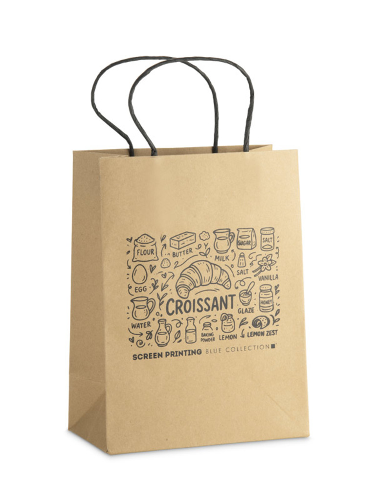 Papírová taška PAKLO střední velikosti je klasický, estetický obal vyrobený z pevného 200g kraftového papíru. Má kroucená ucha z černého papíru, která dobře ladí s přírodní barvou tašky a zajišťují pohodlné přenášení. Díky svému jednoduchému tvaru je ideální jako dárková taška nebo firemní obal na propagační materiály a malé dárkové sady. Výrobek lze opatřit značkou, která bude odpovídat identitě vaší značky.
