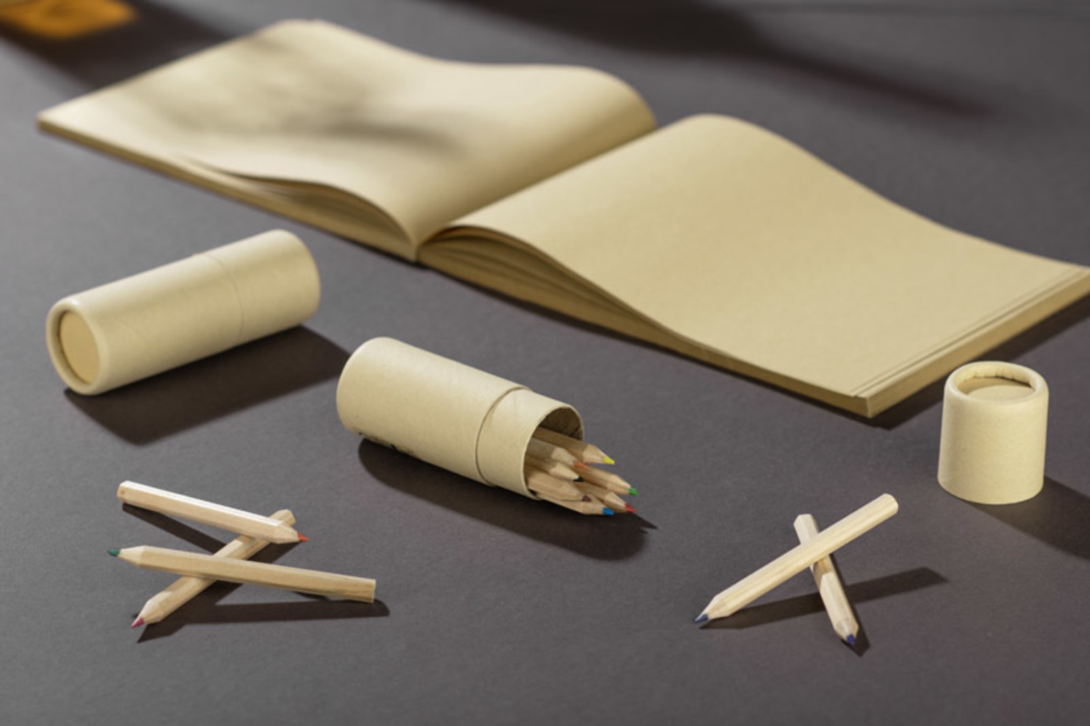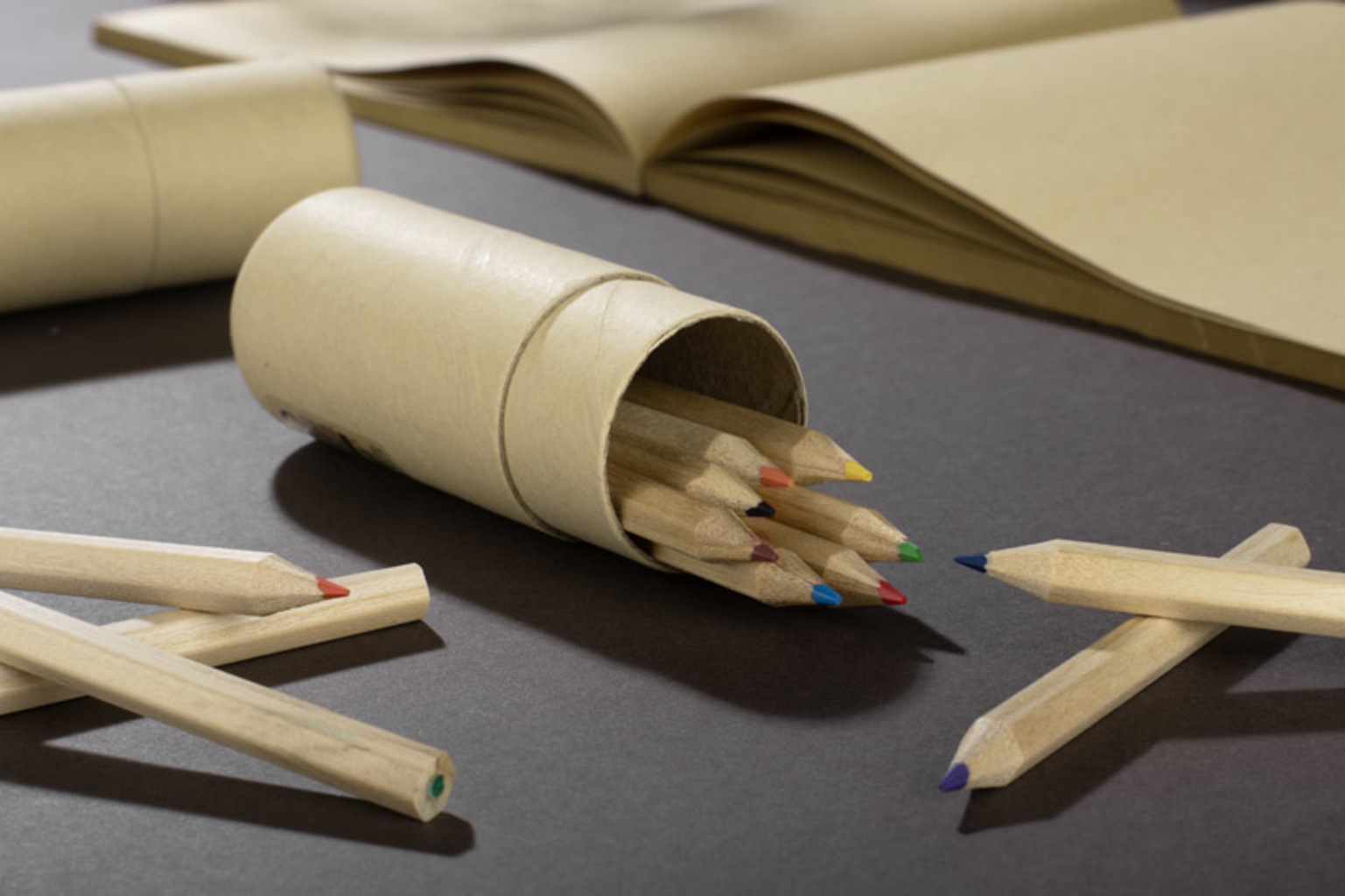 Sada REDKO obsahuje 12 dřevěných pastelek balených v kartonové tubě.