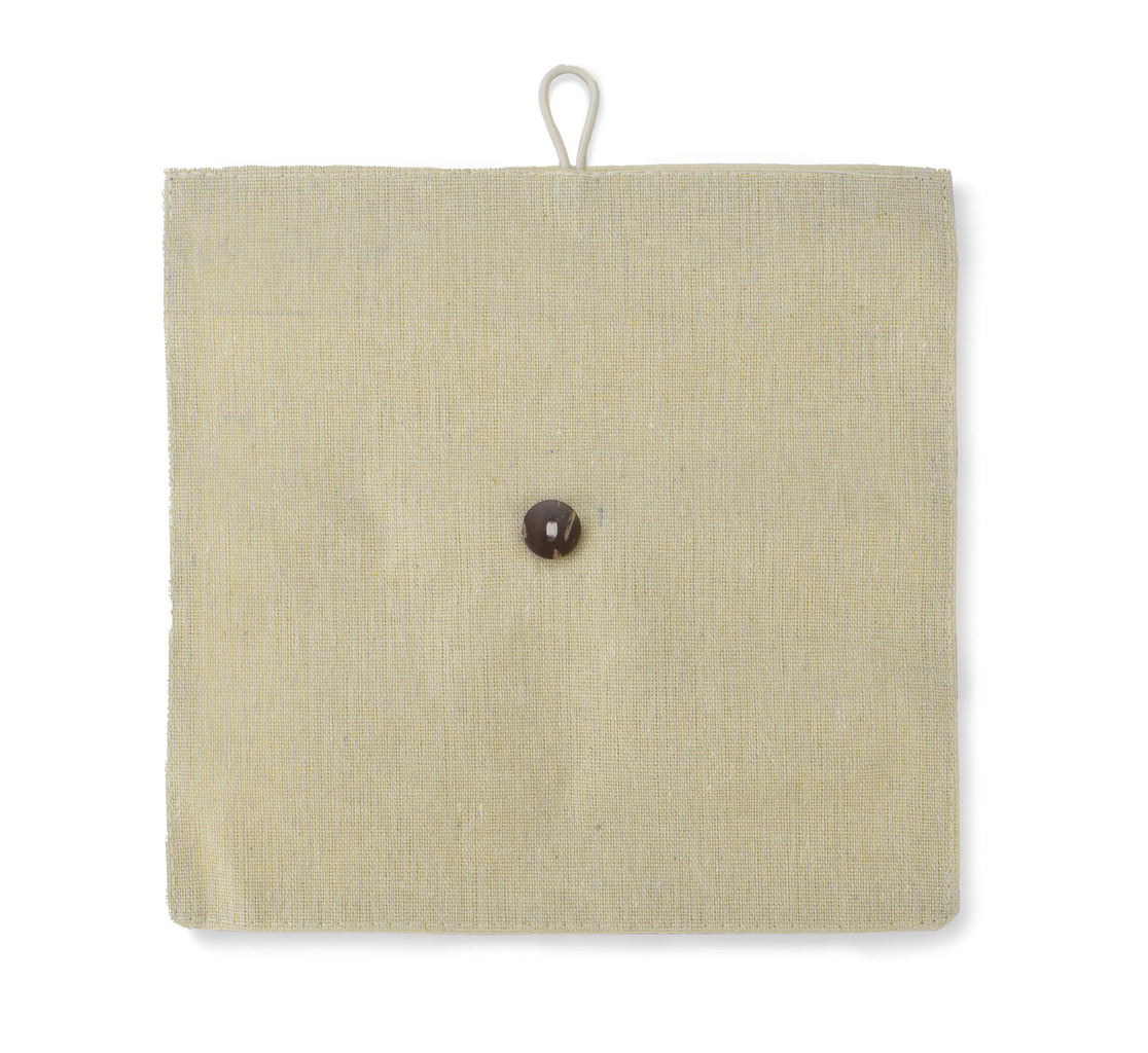 Ekologická pouzdro na tužky vyrobené z bavlněného lnu. Uzavřeno knoflíkem. Soubor obsahuje 3 ekologické kuličkové pera (černé, modré, červené), tužku, tužkovač, gumu, pravítko. Logo bude tisknuto.