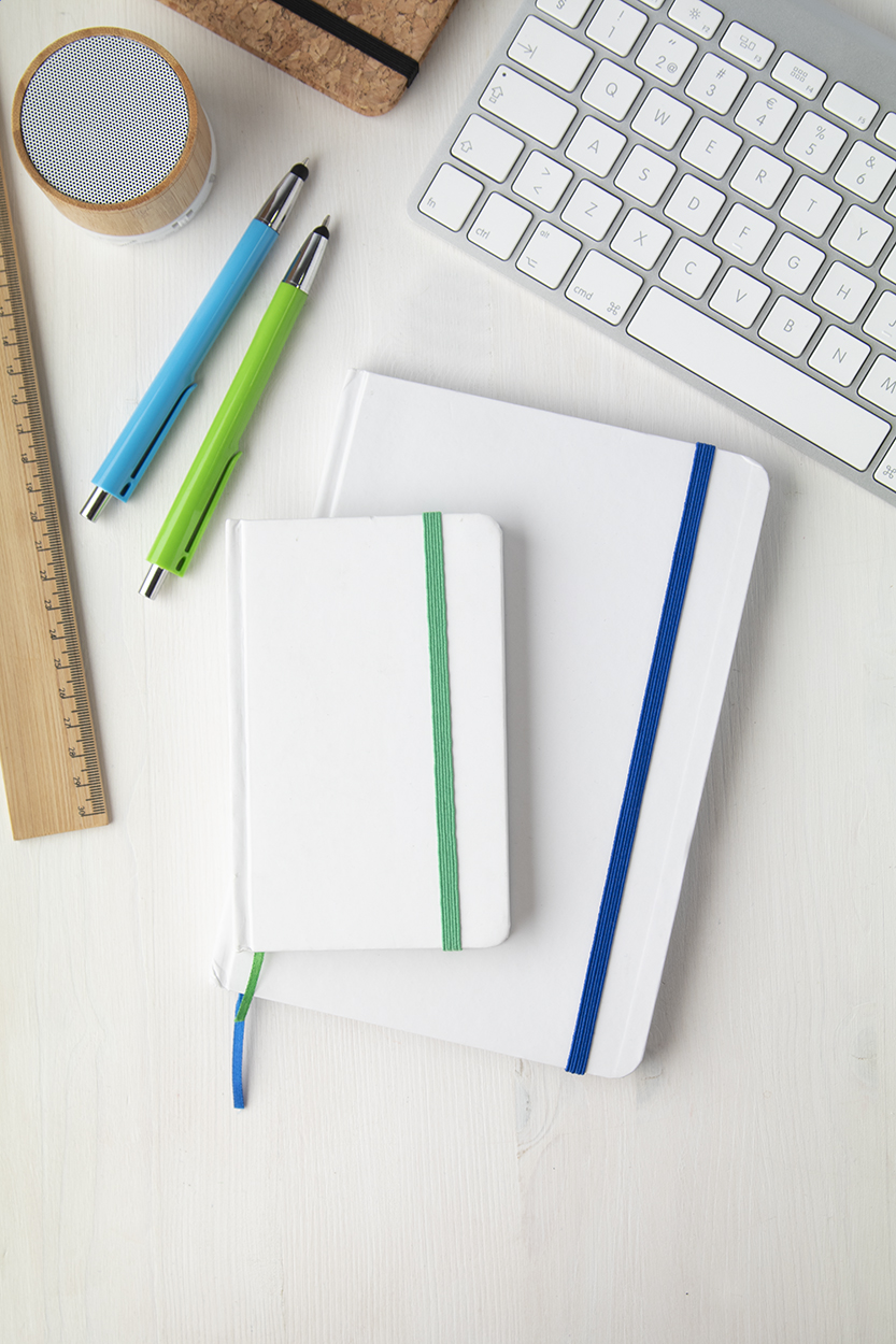 Blok se 100 čistými listy v papírových deskách a barevnou gumičkou, A5.