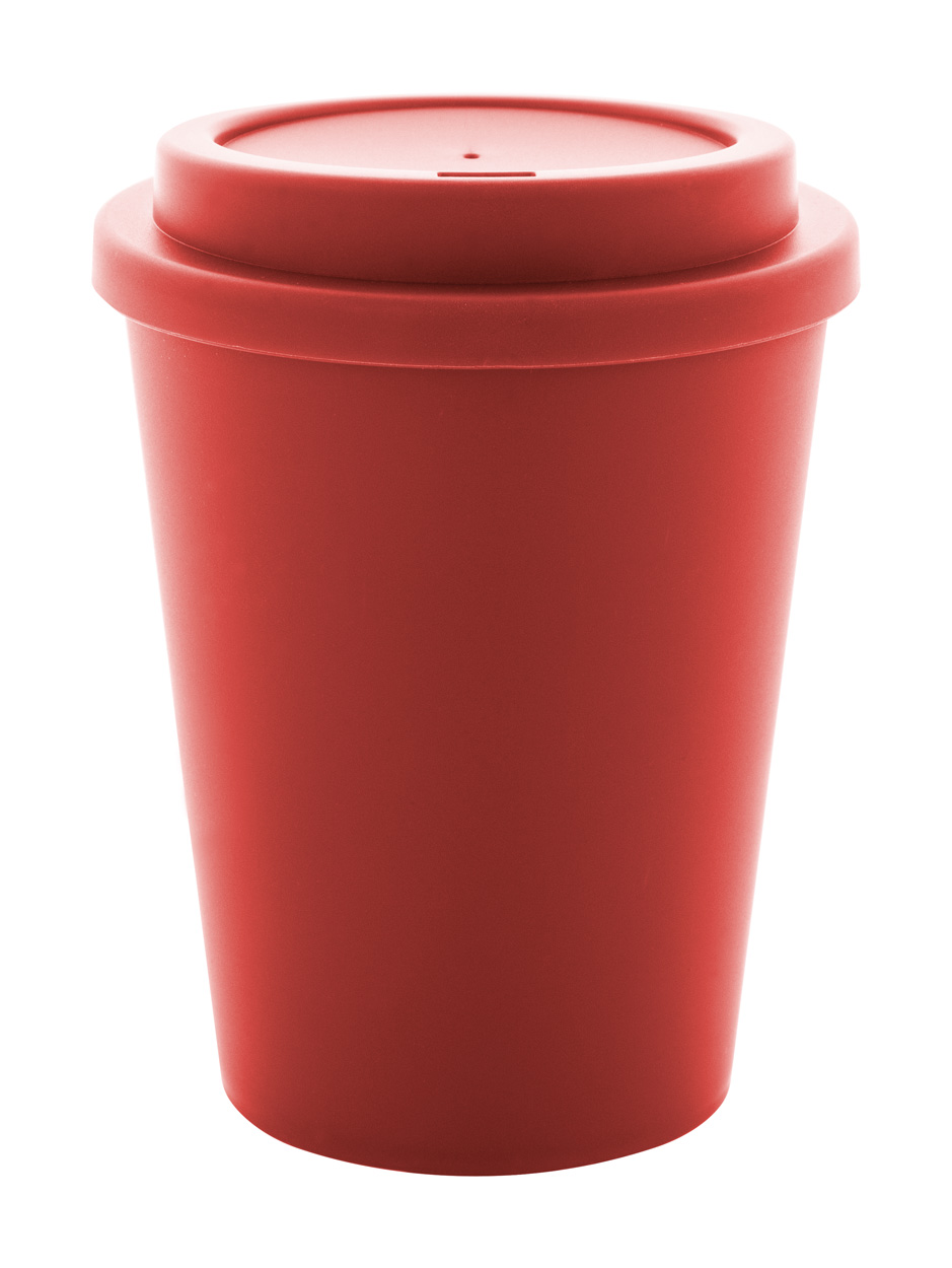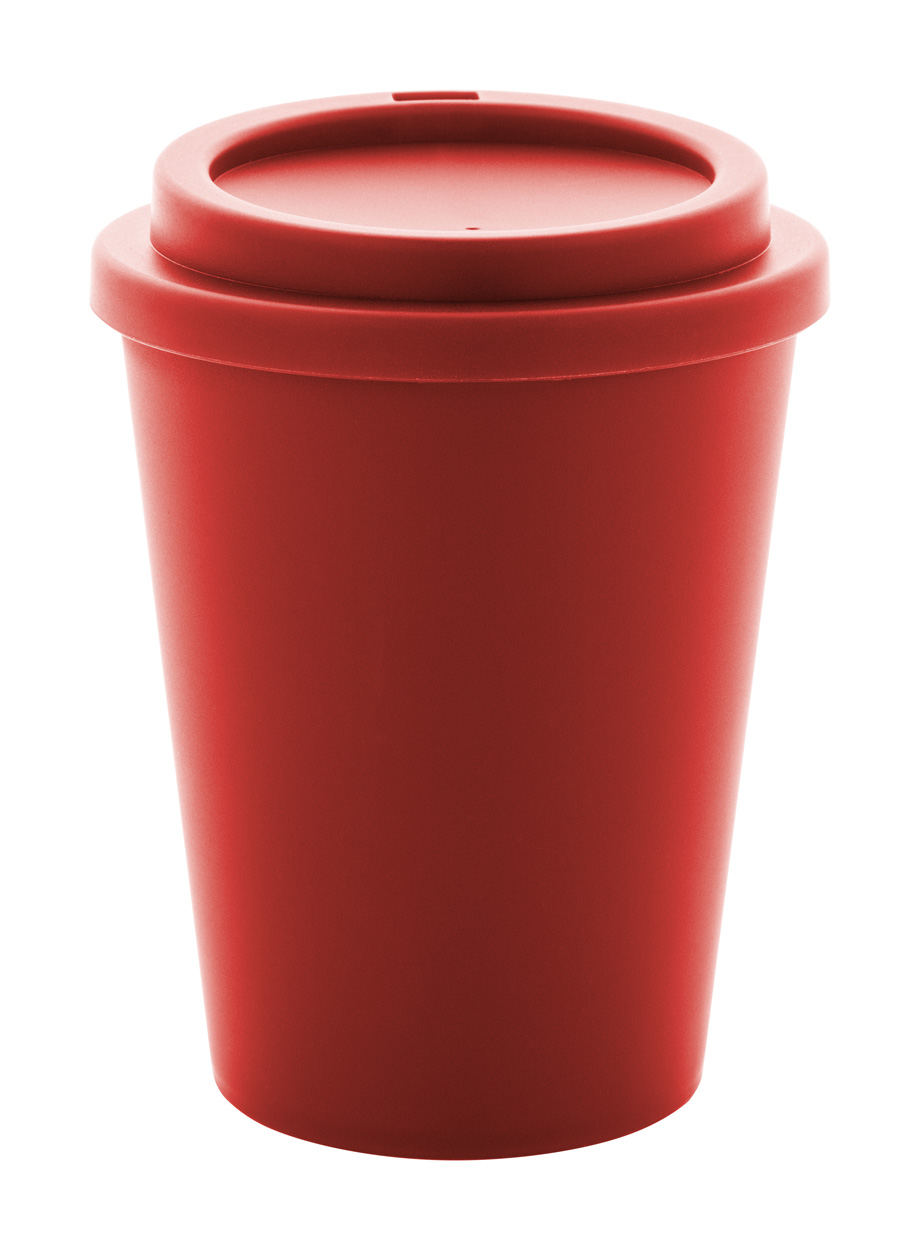 Dvoustěnný termo hrnek izolovaný PP plastem s víčkem na pití. 300 ml.