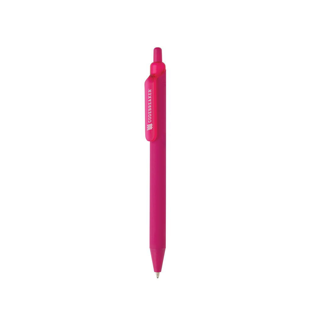 Pero je vyrobeno z 91 % z recyklovaného ABS a kombinuje odolnost se stylem. Je vybaveno hladkým pogumovaným silikonovým úchopem pro větší pohodlí. Matný povlak na klipu a hrotu dodává elegantní vzhled, zatímco modrý inkoust vydrží až 1200 metrů. Pero se ovládá pomocí klikacího mechanismu.