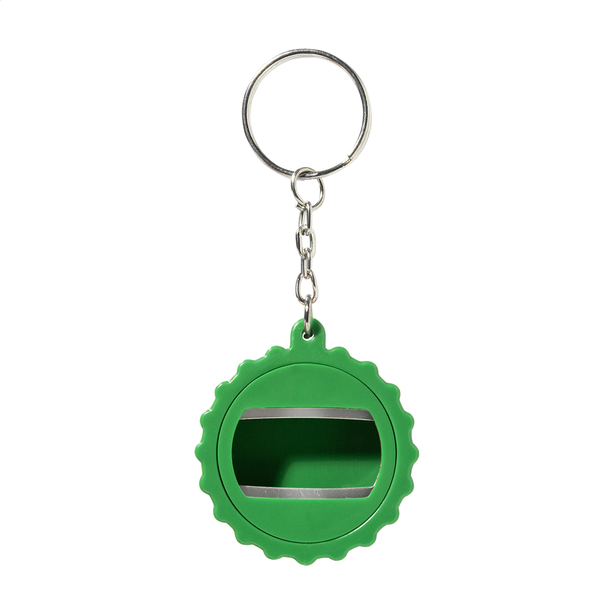 Přívěsek na klíče ve tvaru víčka z recyklovaného ABS plastu s otvírákem.