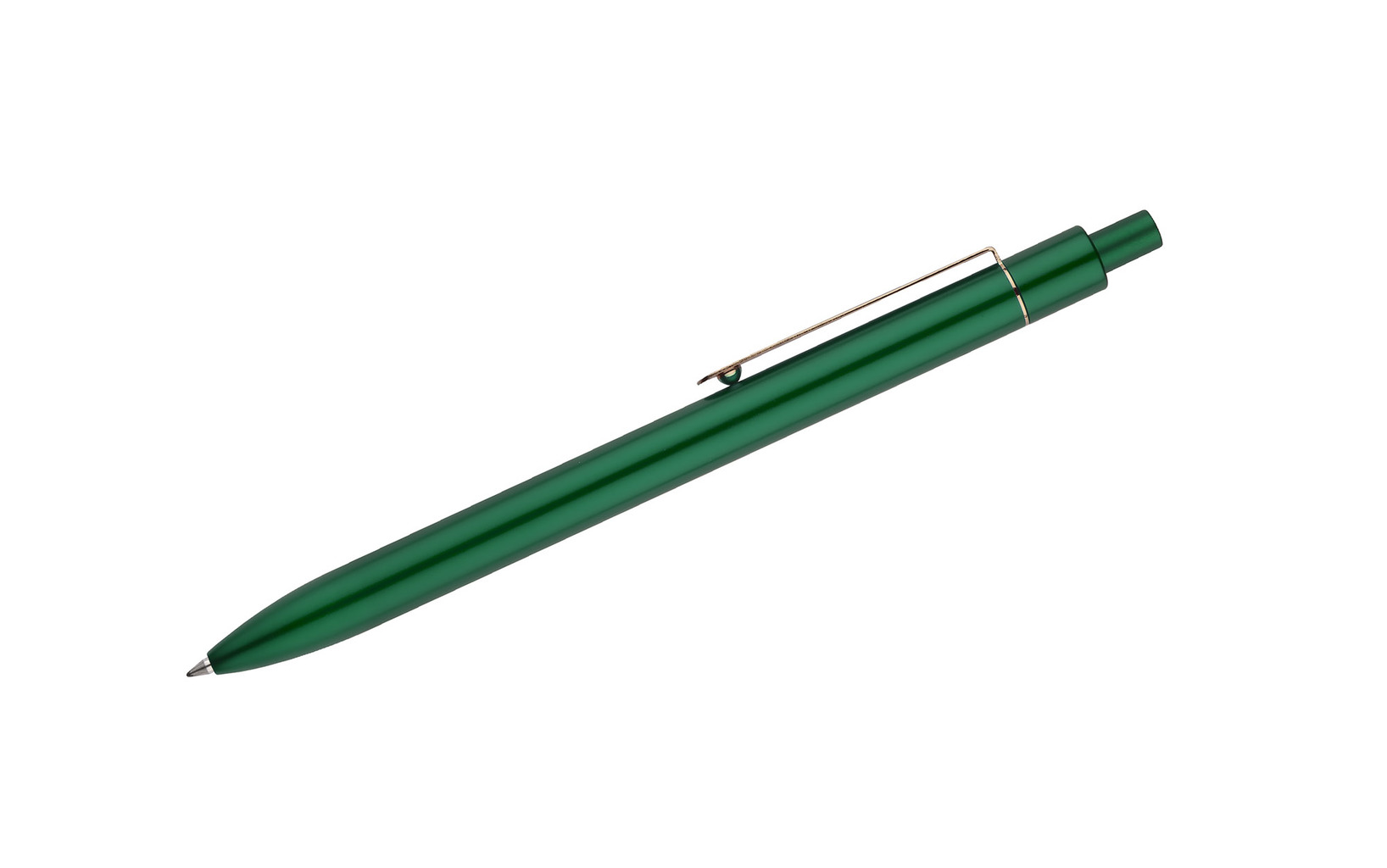 Stylová hliníková propiska s matnou konečnou úpravou a zlatým klipem.