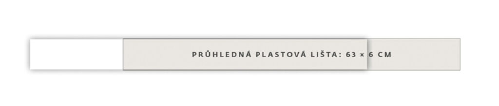 Průhledná plastová lišta s kapsou 63 x 6 cm Možnost potisku vlastního vloženého pásku: 62,3 x 5,6 cm
