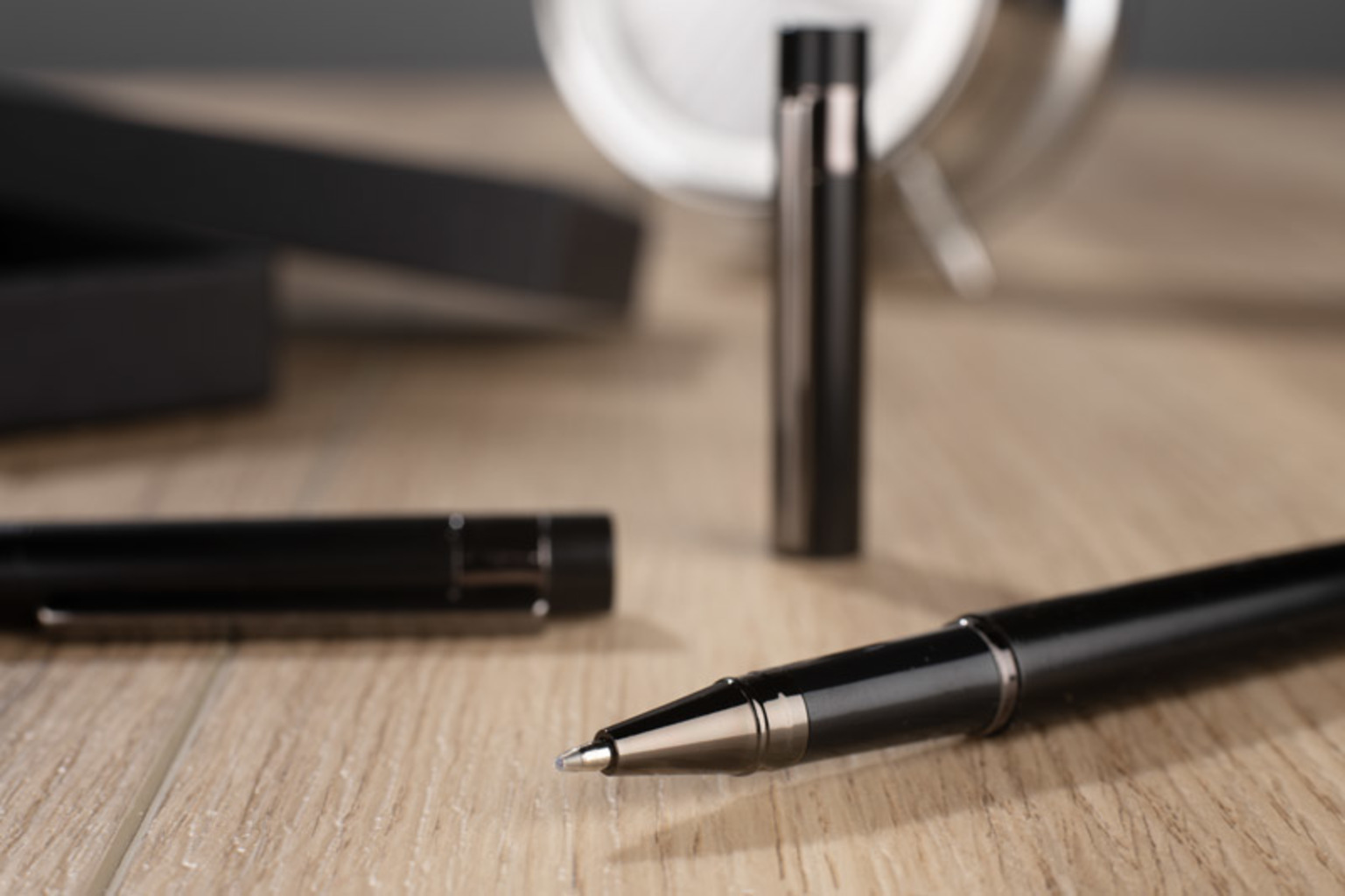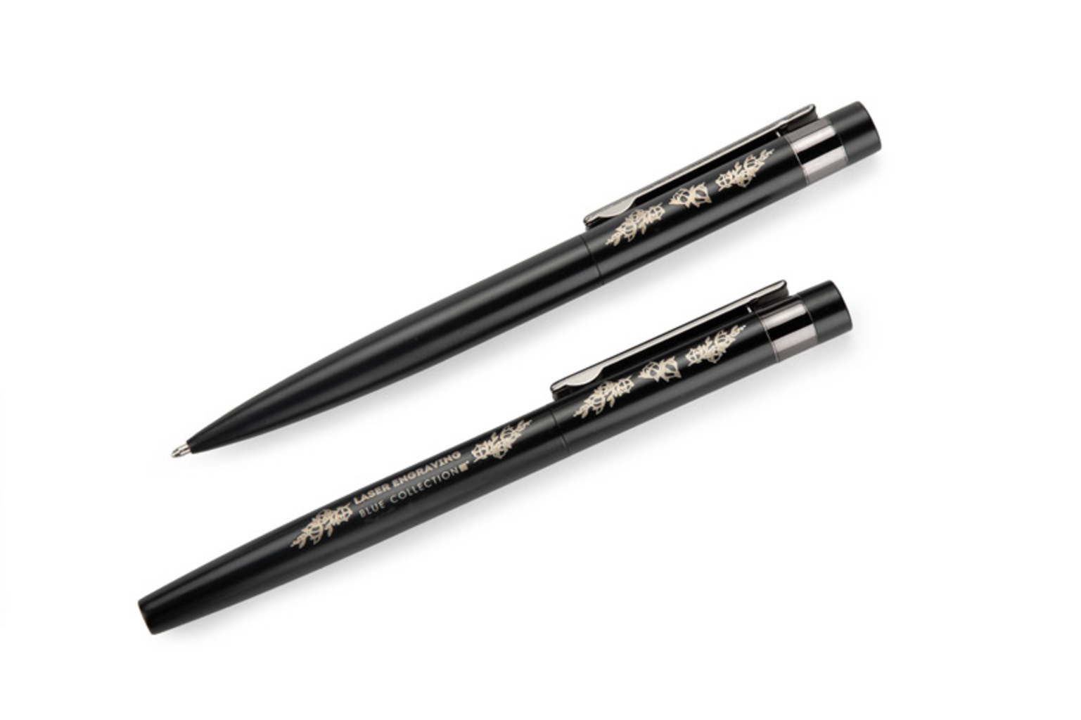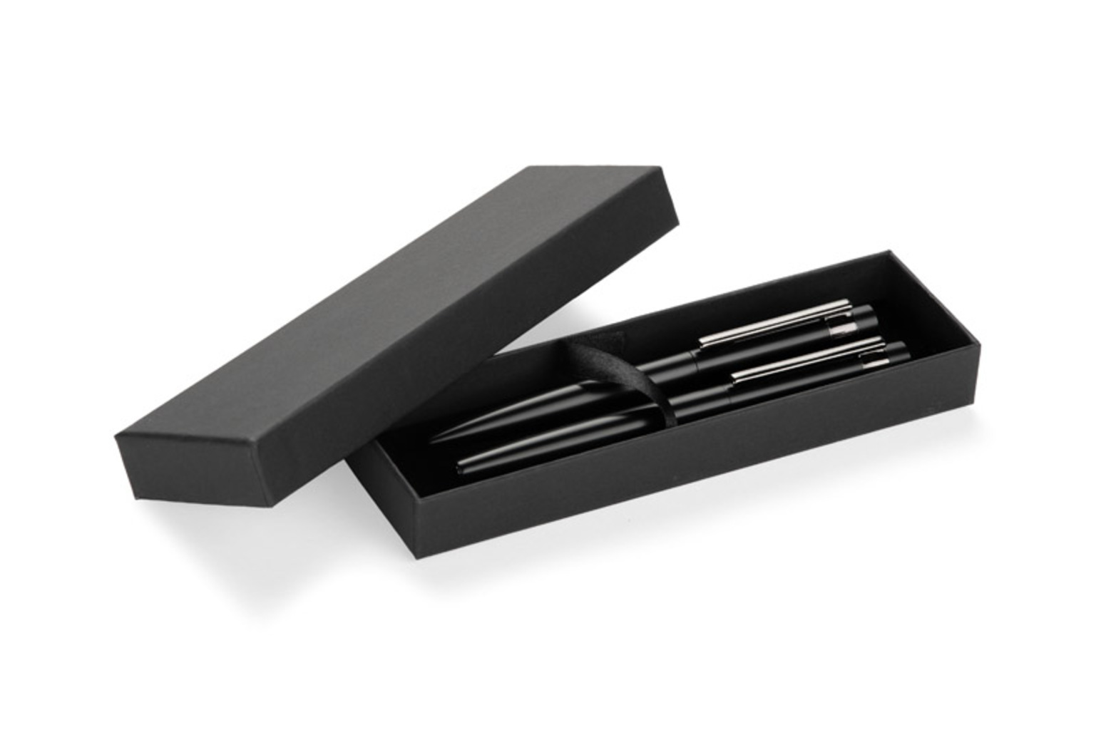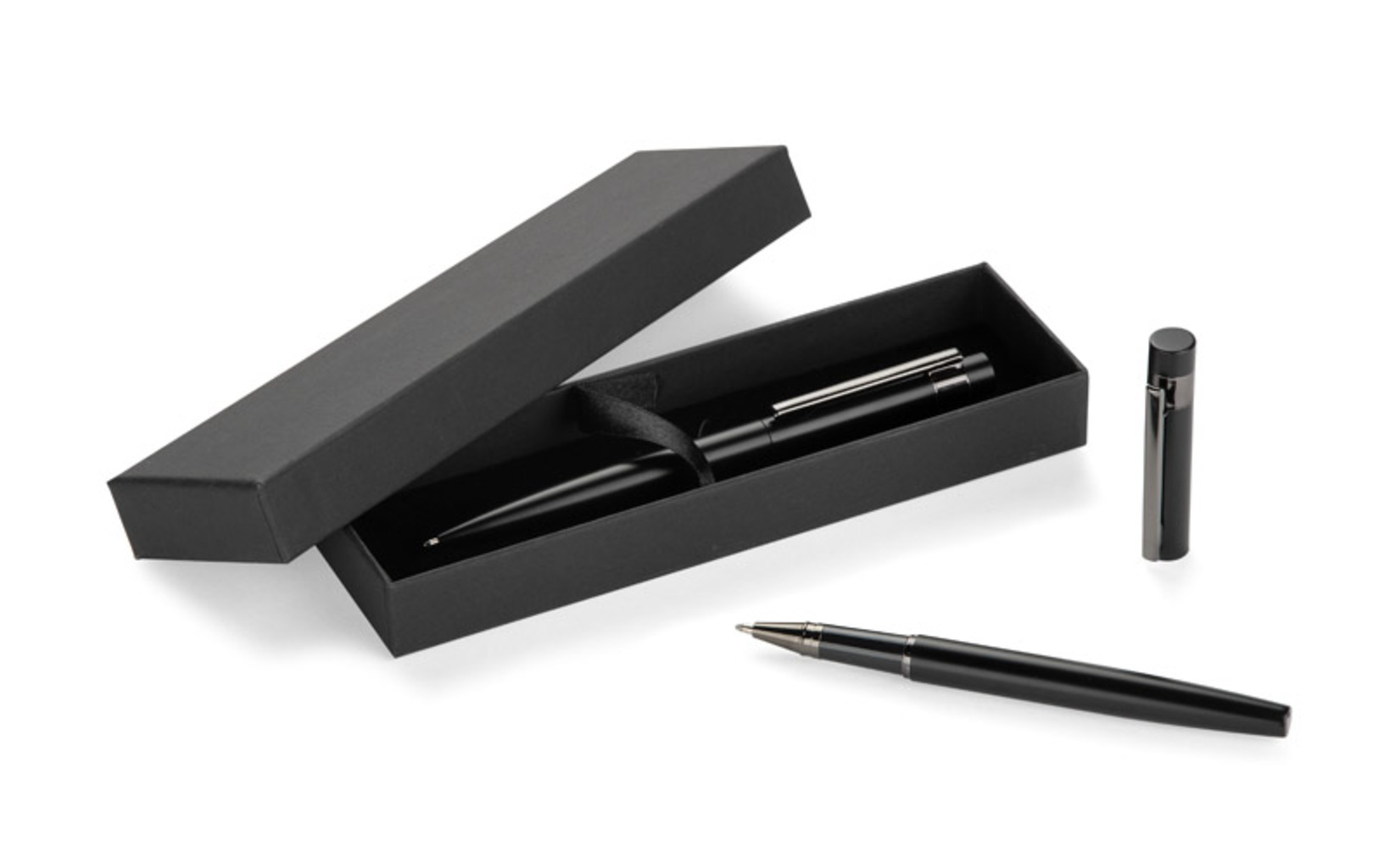 Psací souprava ZILE v pouzdře obsahuje kovové biro a kuličkové pero s moderní povrchovou úpravou. Celá sada je doplněna elegantním tmavě šedým klipem, který dodává sadě profesionální nádech. Vynikající volba pro firemní dárek.