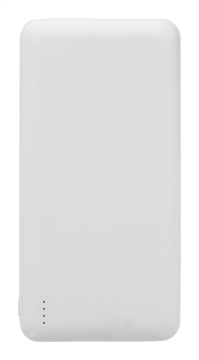 Power banka z recyklovaného ABS plastu s baterií 20 000 mAh. Se 2 USB a 1 nabíjecím portem USB-C. Vstupní porty micro USB a USB-C. Včetně nabíjecího kabelu USB.