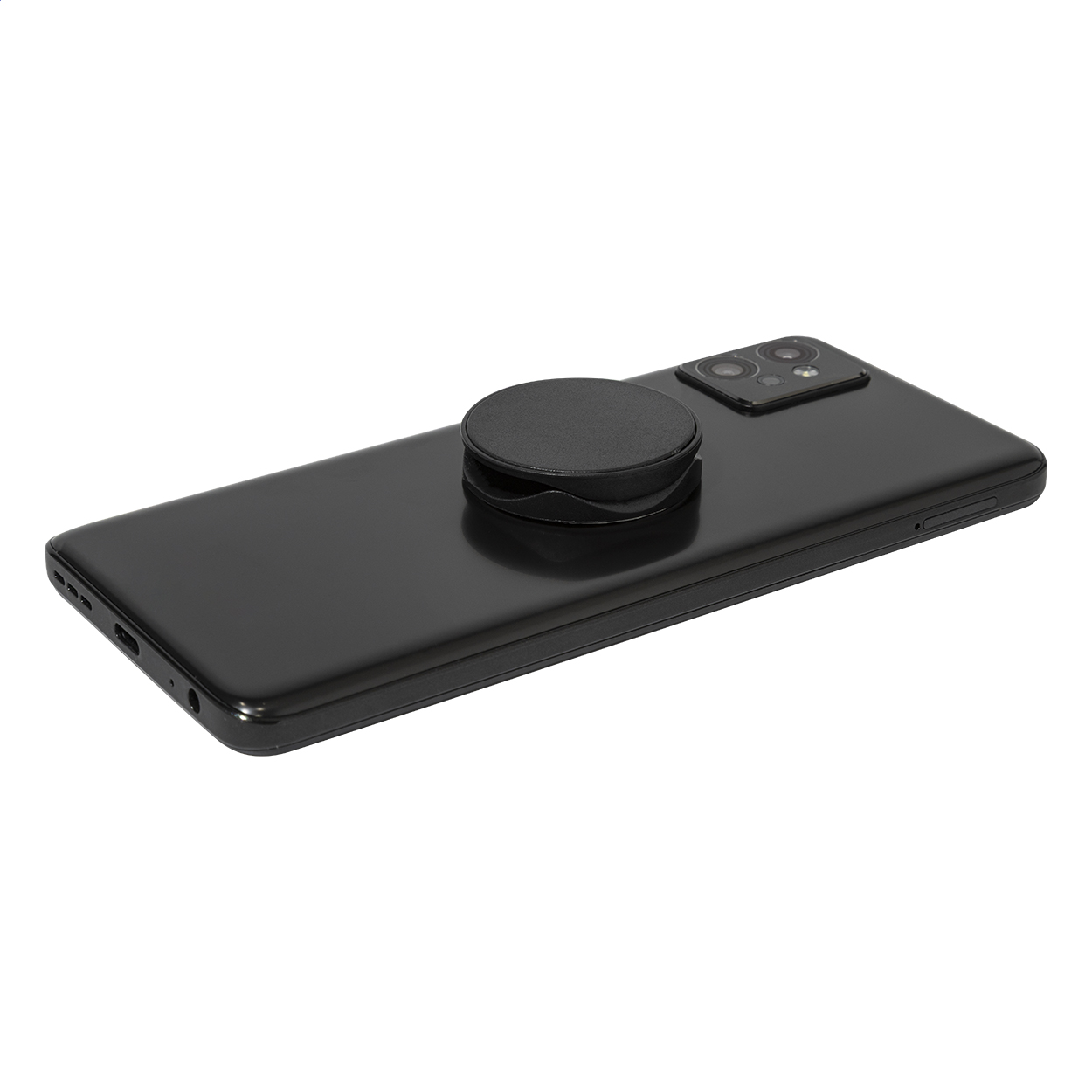 Kulatý držák na mobil z recyklovaného ABS se samolepicí základnou.