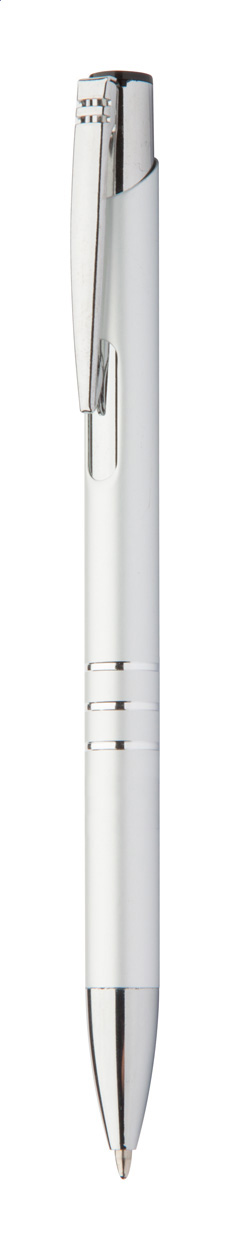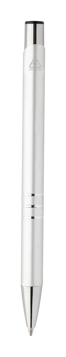 Kuličkové pero z recyklovaného hliníku s metalickým povrchem a modrou náplní.