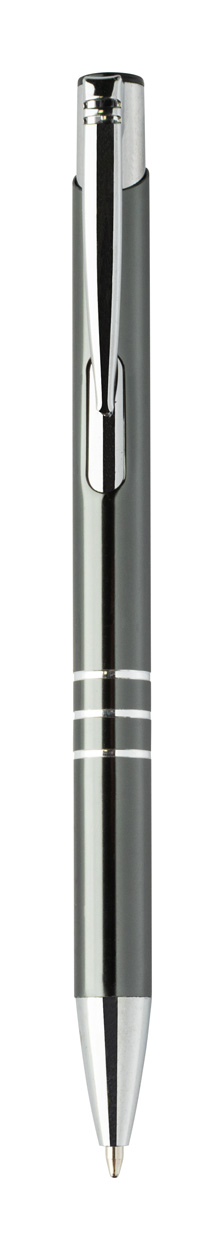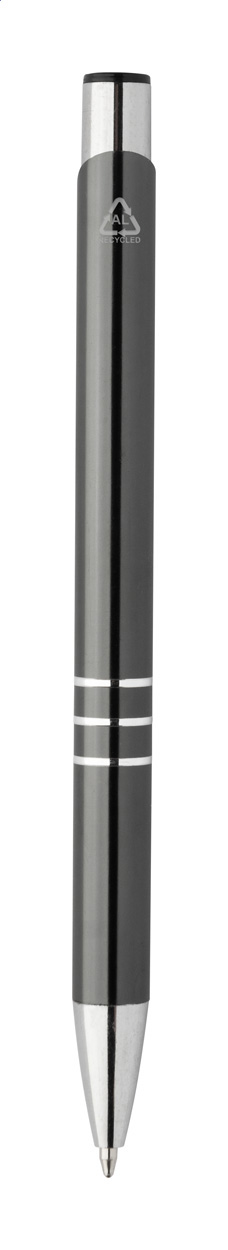 Kuličkové pero z recyklovaného hliníku s metalickým povrchem a modrou náplní.