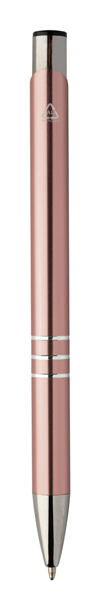 Kuličkové pero z recyklovaného hliníku s metalickým povrchem a modrou náplní.