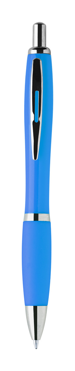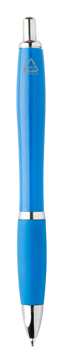 Kuličkové pero z recyklovaného ABS plastu s úchopem v odpovídající barvě a chromovanými částmi. S modrou náplní.