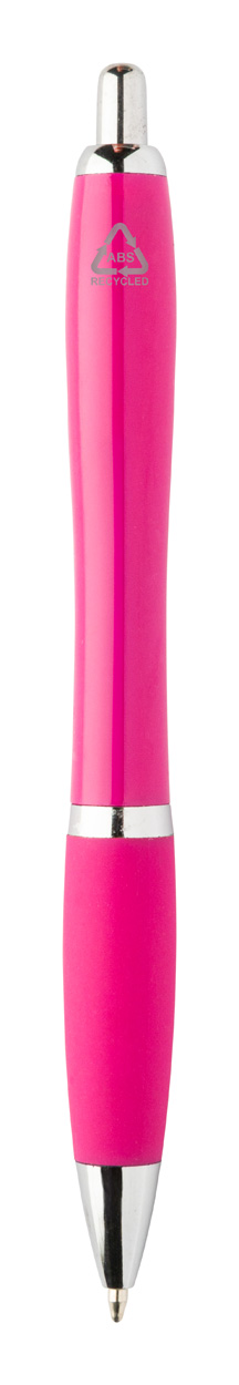 Kuličkové pero z recyklovaného ABS plastu s úchopem v odpovídající barvě a chromovanými částmi. S modrou náplní.