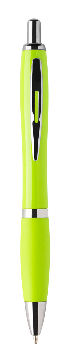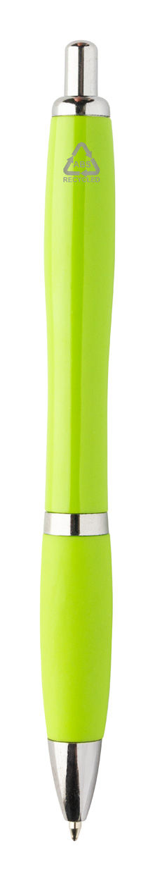 Kuličkové pero z recyklovaného ABS plastu s úchopem v odpovídající barvě a chromovanými částmi. S modrou náplní.
