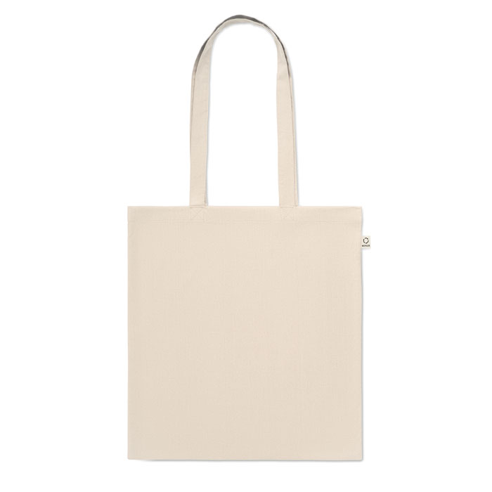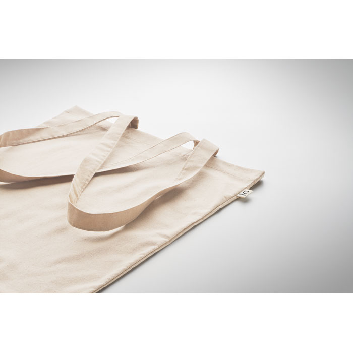 Nákupní taška z recyklované předspotřební bavlny (70 % recyklovaná bavlna a 30 % RPET) s dlouhými uchy. 140 gr/m².