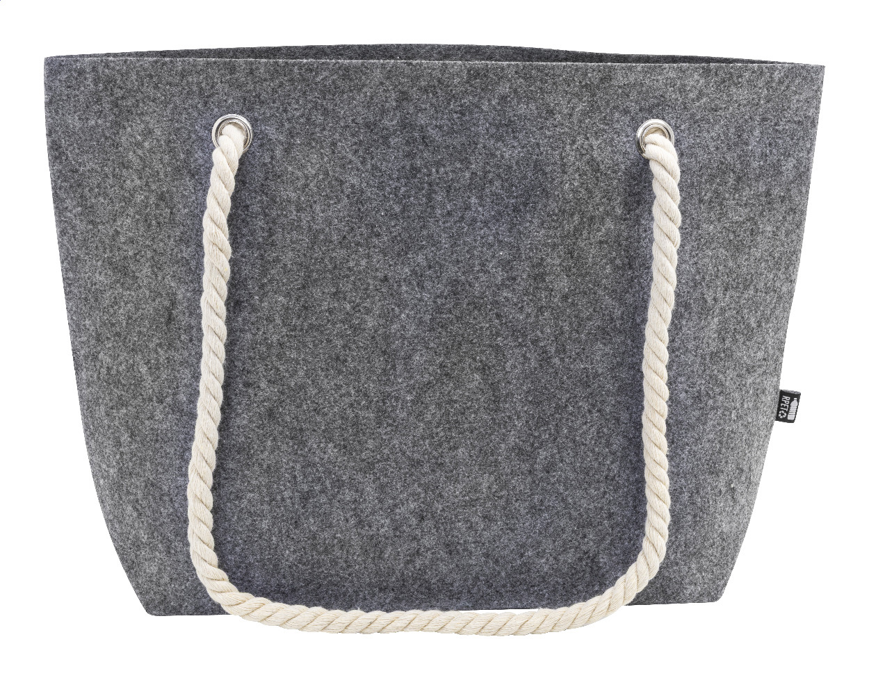 Plážová nebo nákupní taška z RPET s bavlněnými šňůrkami a spodním klínkem. S výrazným štítkem RPET.