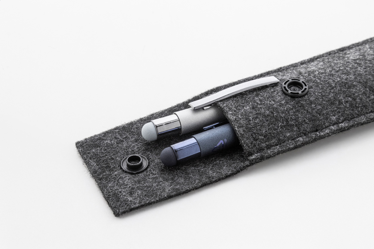 Pouzdro na pera z RPET plsti s knoflíkovým zapínáním, pro 2 pera.