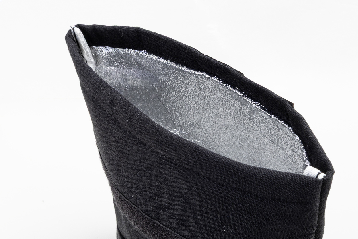 Chladicí taška z recyklovaného plátna s rolovacím vrškem, přední kapsou, hliníkovou výplní a zapínáním na suchý zip. 70 % recyklované bavlny a 30 % RPET polyesteru. S výrazným štítkem recyklované bavlny.