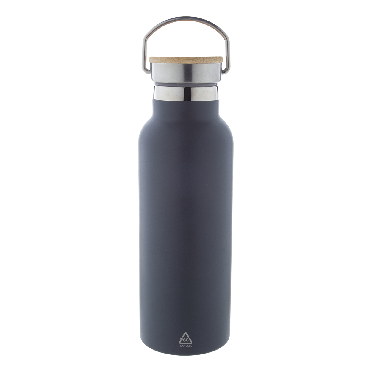 Dvoustěnná vakuově izolovaná termoska z recyklované nerezové oceli s bambusovým víčkem. 500 ml.