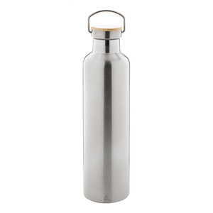 Dvoustěnná vakuově izolovaná láhev z recyklované nerezové oceli s bambusovým víčkem, 1000 ml.