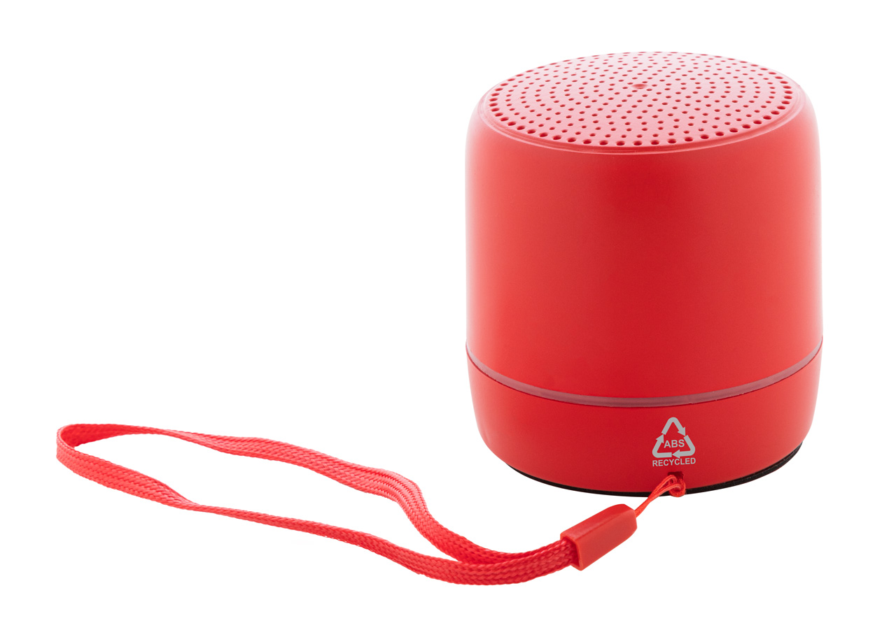 Bezdrátový reproduktor z recyklovaného ABS s funkcí hands-free volání a vestavěnou dobíjecí baterií. Včetně nabíjecího kabelu USB.