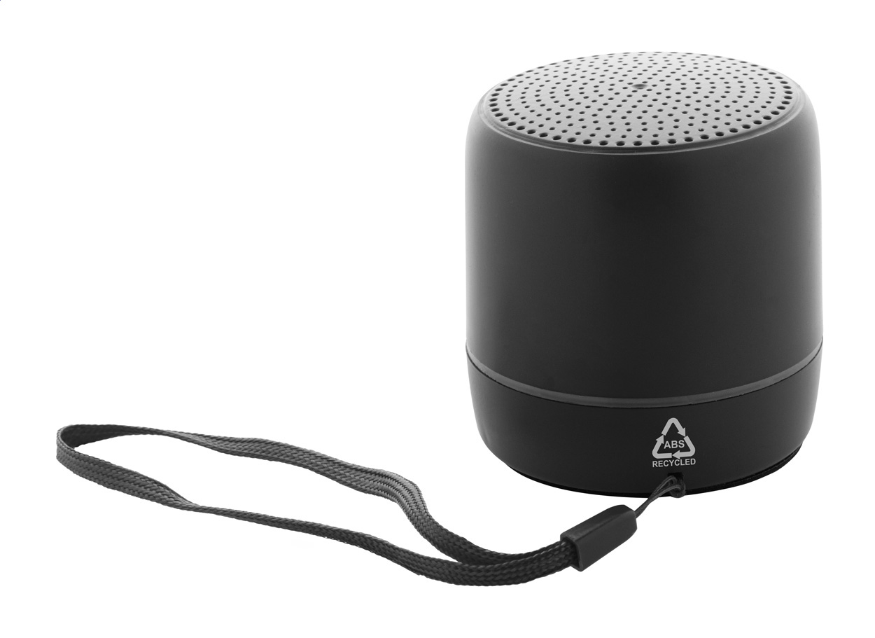 Bezdrátový reproduktor z recyklovaného ABS s funkcí hands-free volání a vestavěnou dobíjecí baterií. Včetně nabíjecího kabelu USB.