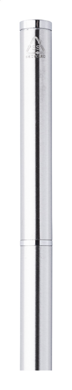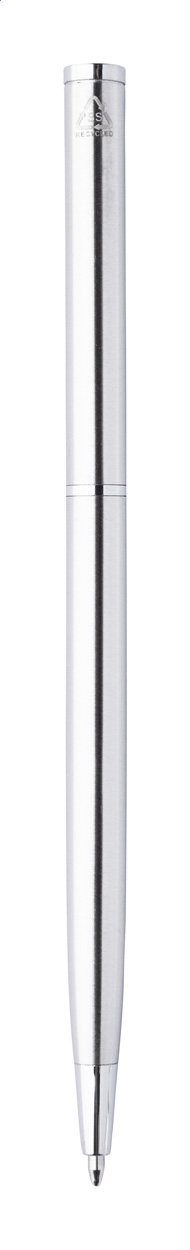 Recyklované kuličkové pero z nerezové oceli s chromovanými částmi. S modrou náplní.