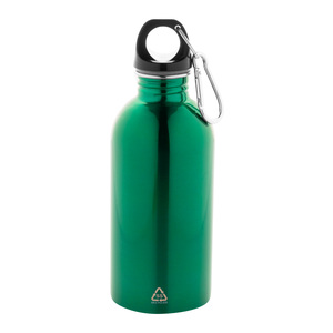 Láhev z recyklované nerezové oceli s hliníkovou karabinou, 400 ml.