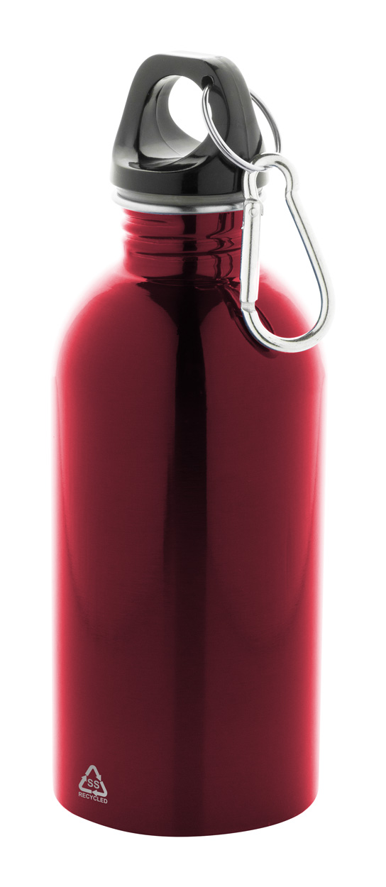 Láhev z recyklované nerezové oceli s hliníkovou karabinou, 400 ml.