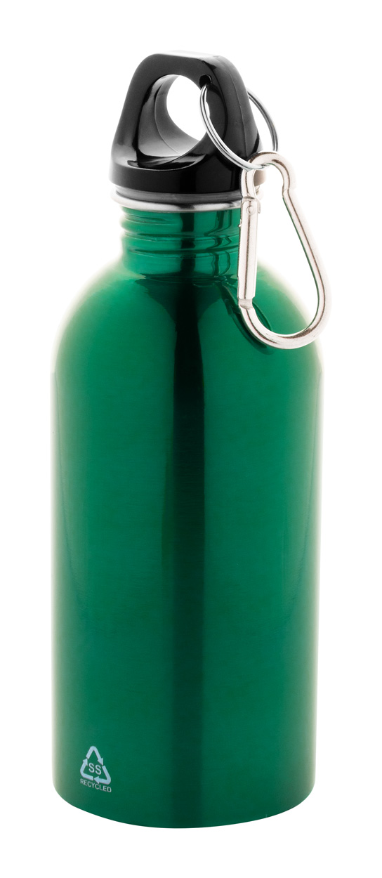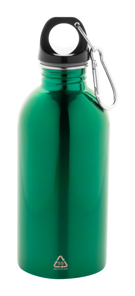 Láhev z recyklované nerezové oceli s hliníkovou karabinou, 400 ml.
