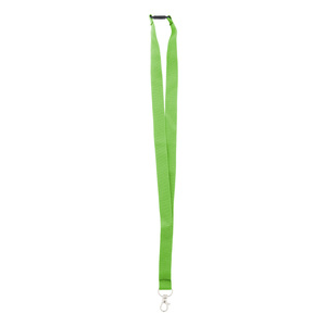 RPET polyesterový lanyard s kovovou karabinou a bezpečnostní přezkou.