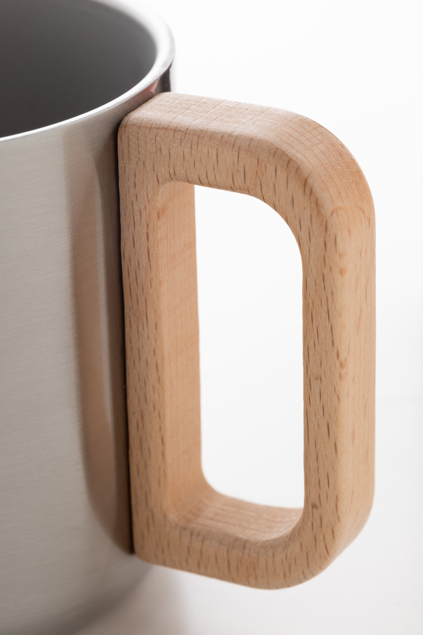 Dvoustěnný termo hrnek z recyklované nerezové oceli s dřevěným uchem. 350 ml.