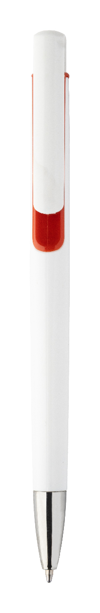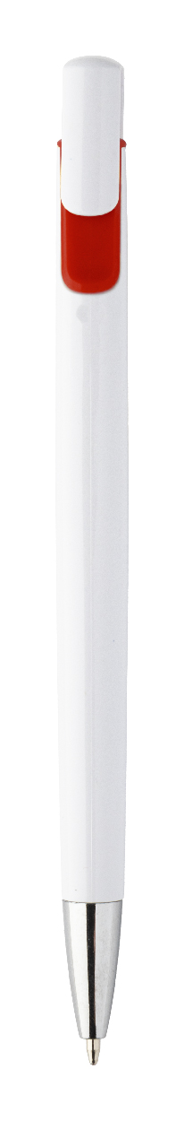 Plastové kuličkové pero s barevnými doplňky a chromovou špičkou. Dodáváno s modrou náplní.