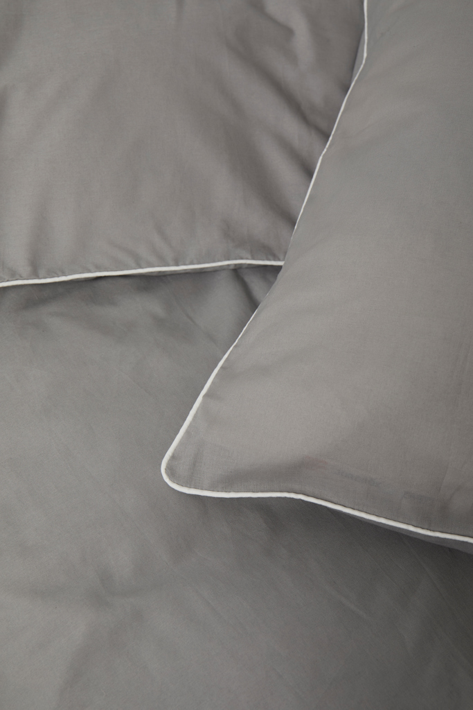 Elegantní sada ložního povlečení s jednobarevným designem a kontrastními lemy. Sada obsahuje dva povlaky na polštář (50x60 cm) a dva povlaky na peřinu (150x210 cm). Standard Organic Content Standard (OCS) se zaměřuje na organicky vypěstovaný materiál a sleduje jej od zdroje až po konečný produkt. Produkt obsahuje 98 % organické bavlny s certifikací OCS.