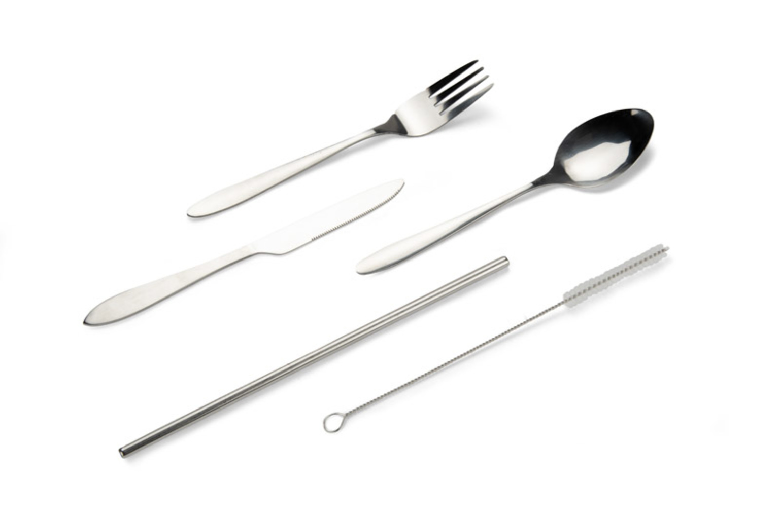 Sada příborů ZUNA je praktická sada příborů z kovu, která je ideální pro použití na cestách, v práci nebo při obědě venku. Sada obsahuje nůž, vidličku, lžíci, kovové brčko a kartáček na čištění. Celá sada je zabalena v měkkém neoprenovém pouzdře, které chrání obsah a usnadňuje skladování. Funkční a estetická sada, která se osvědčí jako praktická reklamní pomůcka.