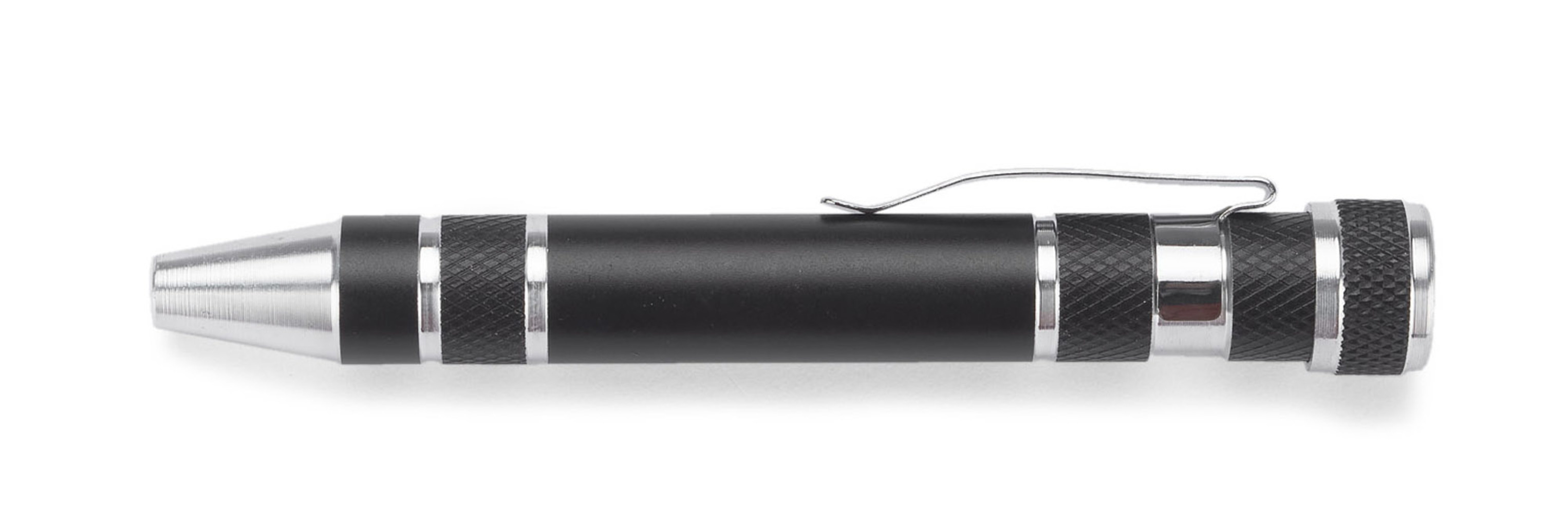 Sada šroubováků obsahující 8 různých konců. Sponka umožňuje připnout ji do kapsy. Konce šroubováků jsou upevněny magnetem. Logo může být vyryto na povrchu.