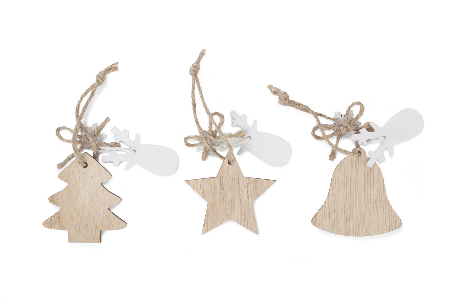 Sada FERI obsahuje 3 vánoční ozdoby různých tvarů: Zvonek, vánoční stromeček a hvězda. Dřevěné ozdoby perfektně zapadají do trendu ekologie a hodí se do každého interiéru.