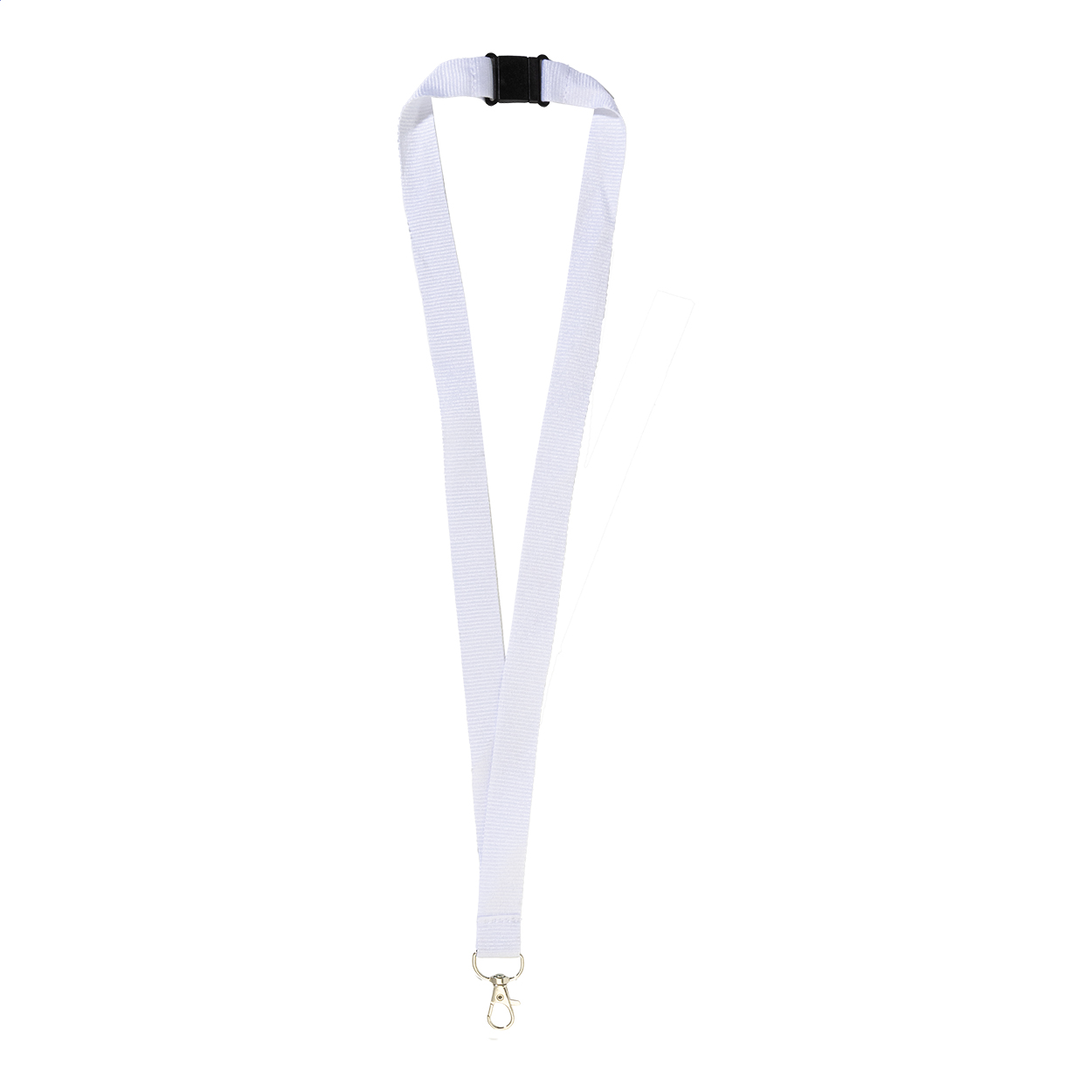 Polyesterový lanyard s kovovou karabinkou a bezpečnostní přezkou.