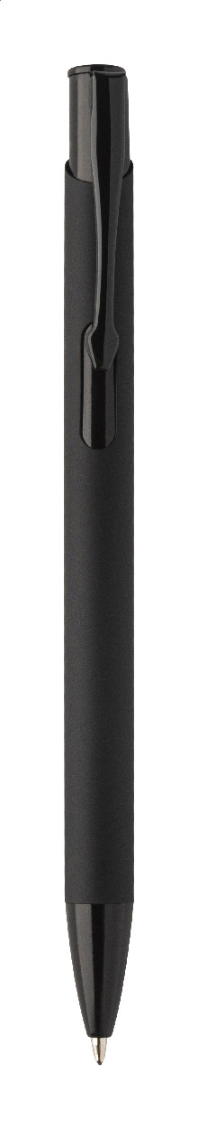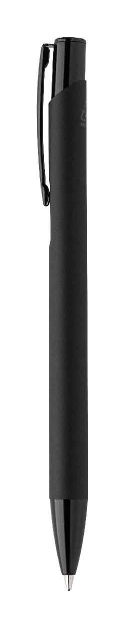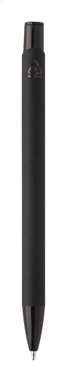 Kuličkové pero z recyklovaného hliníku s pogumovaným tělem a barevnými lesklými kovovými díly. Se speciálním povrchem pro zrcadlové gravírování, které odpovídá kovovým částem. S modrou náplní.