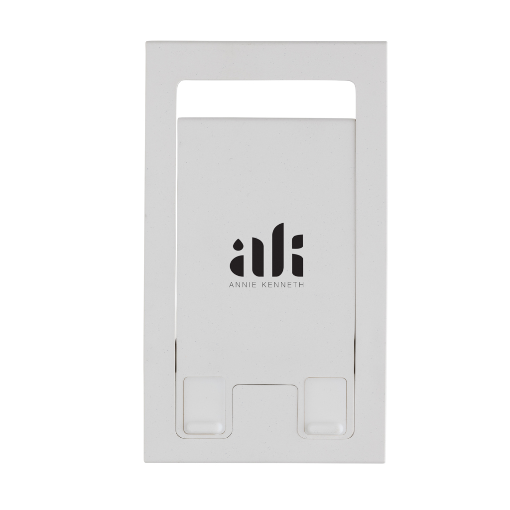 Skládací stojan na telefon vyrobený z RCS recyklovaného ABS. Stojan je dostatečně pevný a sklon lze libovolně nastavit. RCS certifikace zajišťuje garanci použití recyklovaného materiálu díky transparentnímu přehledu nad dodavatelským řetězcem. Celkový podíl recyklátu dle váhy produktu: 85 %. Baleno v papírovém obalu.