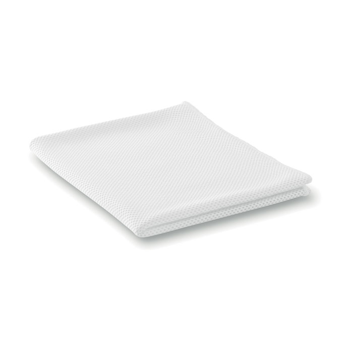 Sportovní ručník, dobře absorbuje vodu. 55% polyamid a 45% mikrovlákno.